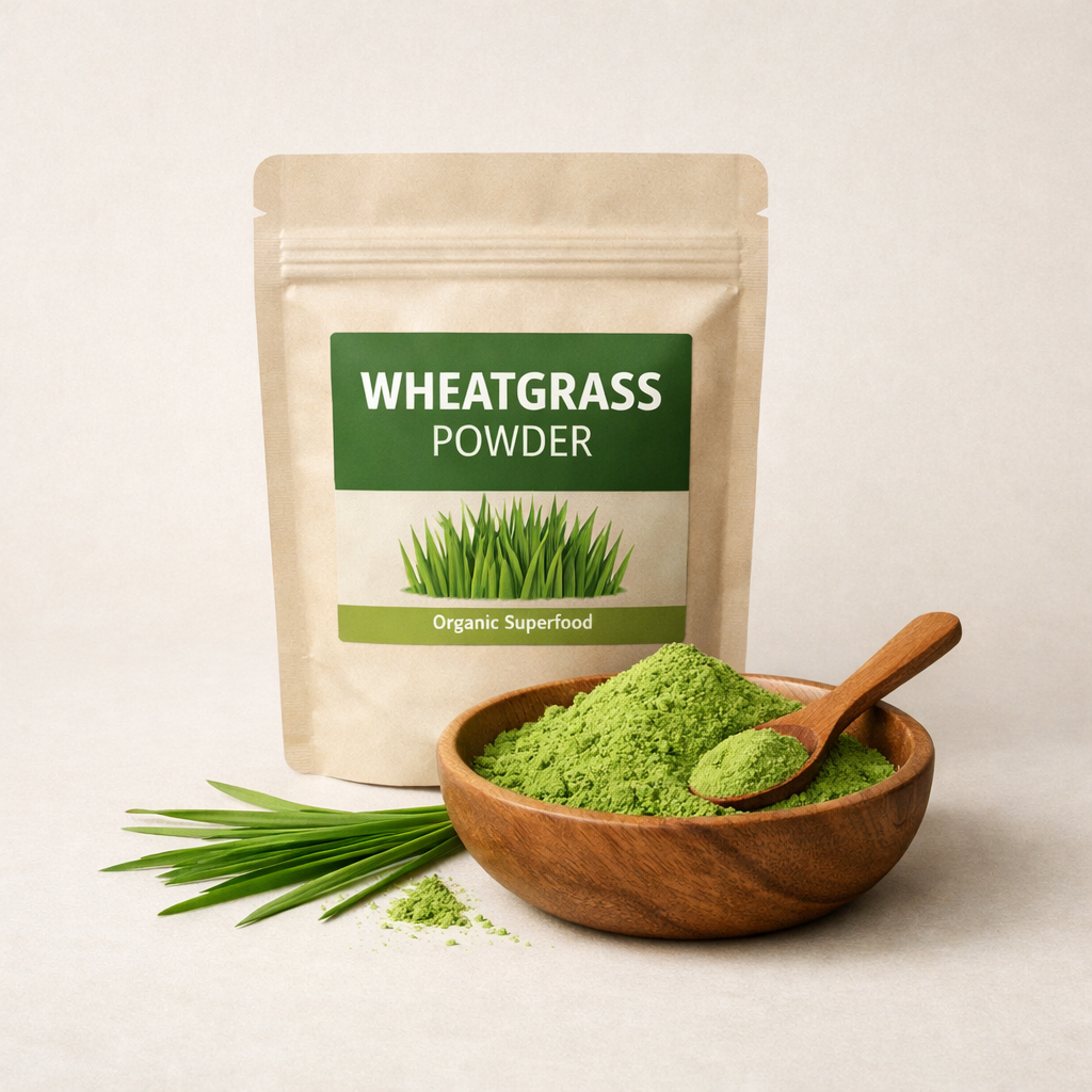 Packed with chlorophyll and essential nutrients, Wheatgrass Powder supports a healthy lifestyle and daily detox routine.